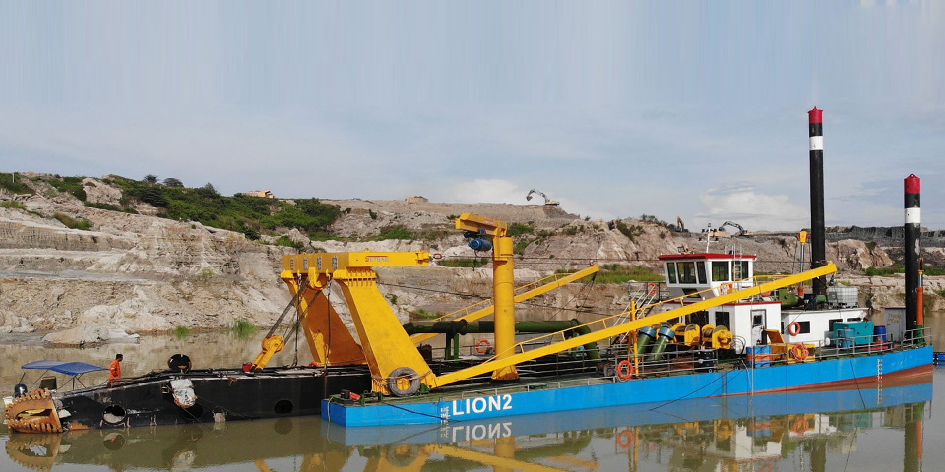 濰坊東洋海科重工建造的4000流量全電動(dòng)水下泵絞吸船服務(wù)馬來(lái)西亞錫礦治理項(xiàng)目現(xiàn)場(chǎng)